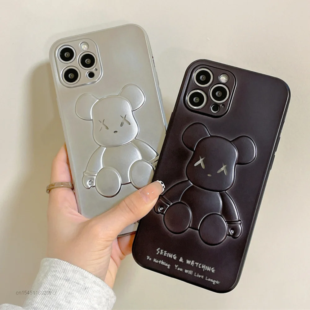 - Caso de telefone de luxo para o iphone 13 12 11 pro max xs x xr caso y2k meninas designer estético leopardo bearbricked urso capa 90s