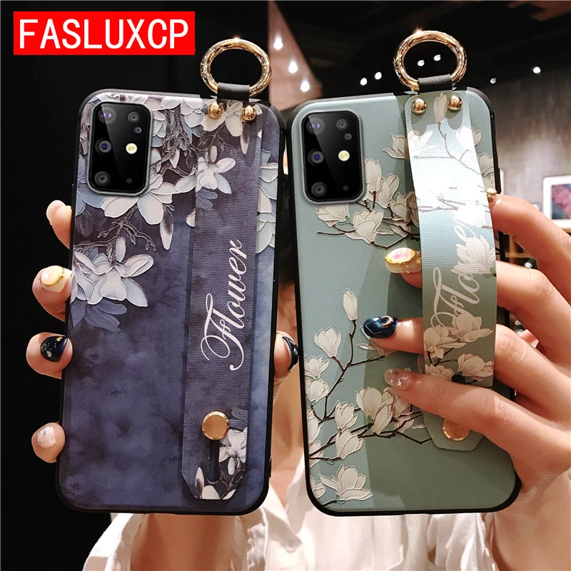 - Capa luxuosa com flor de rosa, suporte de pulso macio tpu para samsung galaxy s20 fe a21s m51 a32 a52 a72 a12 a7 2018