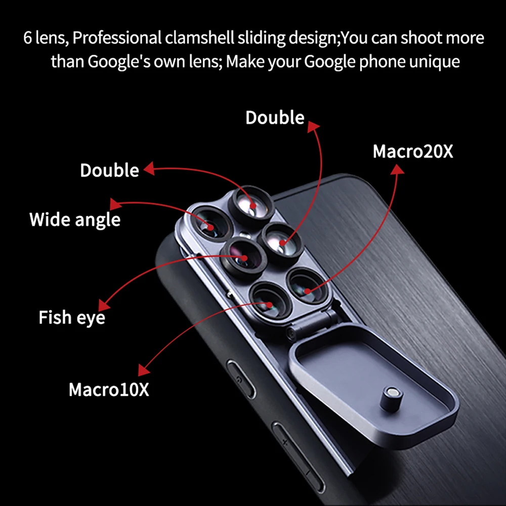 - Ulanzi-capa para telefone com lentes em u, 6 em 1, multi lentes para google pixel 4 pixel 4xl10x 20x, macro/duplo/ângulo amplo/lente de olho de peixe