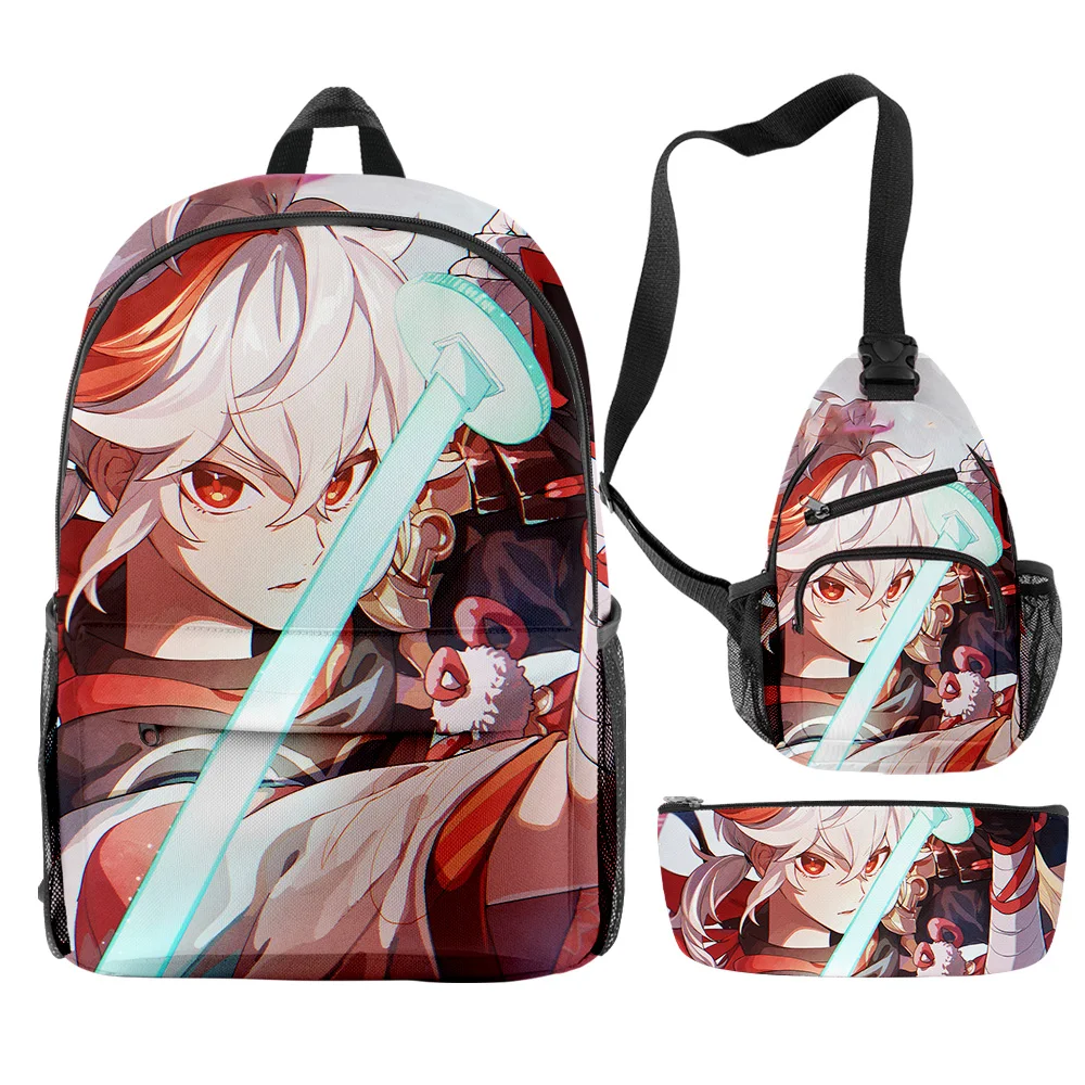 - Genshin impacto kaedehara kazuha 3 pçs/set meninos meninas mochila crossbody saco de lápis caso escola primária estudantes do ensino médio mochila