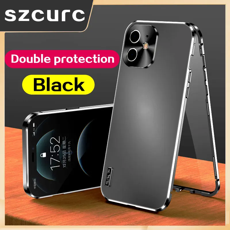 - Para iphone 13 caso. novo 360 ° proteção completa temperado magnética adsorção vidro telefone manga. iphone 11 pro max 12mini capa