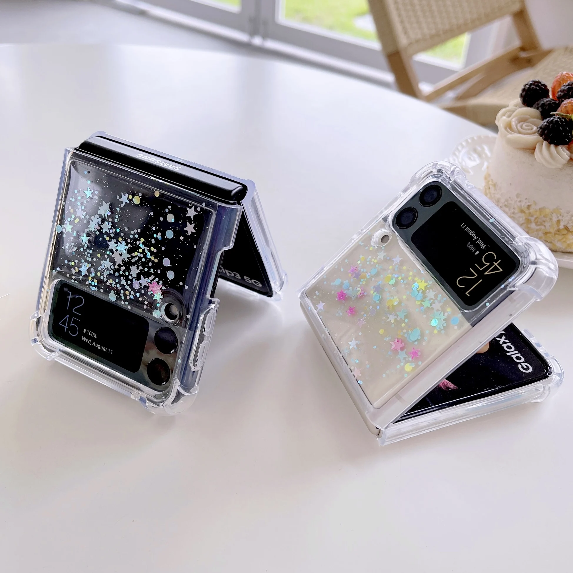 - Para samsung z flip 3 caso lantejoulas estrela coração transparente fold caso do telefone para galaxy z flip 4 zflip3 5g à prova de choque capa traseira dura